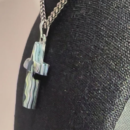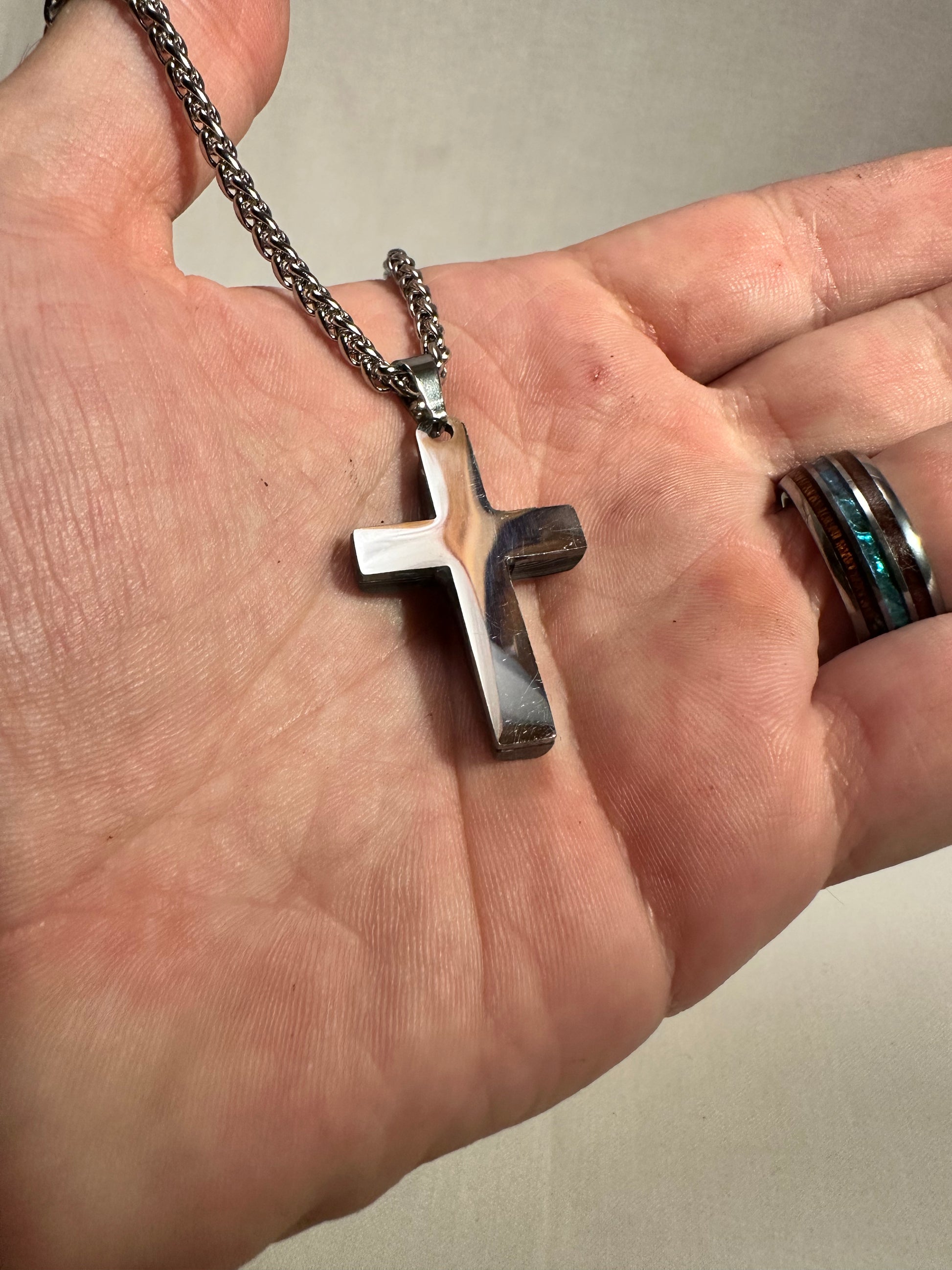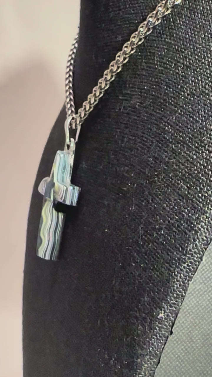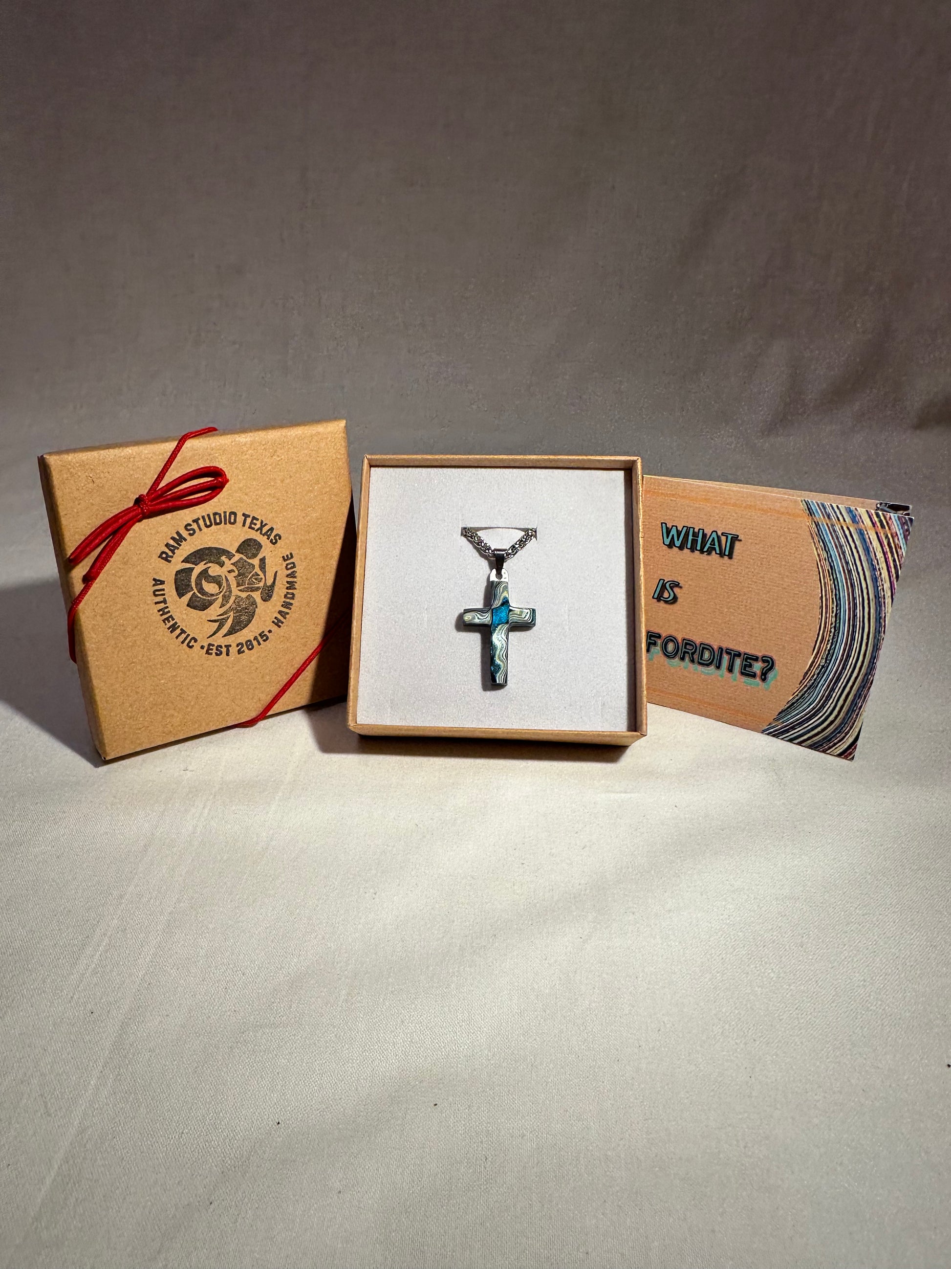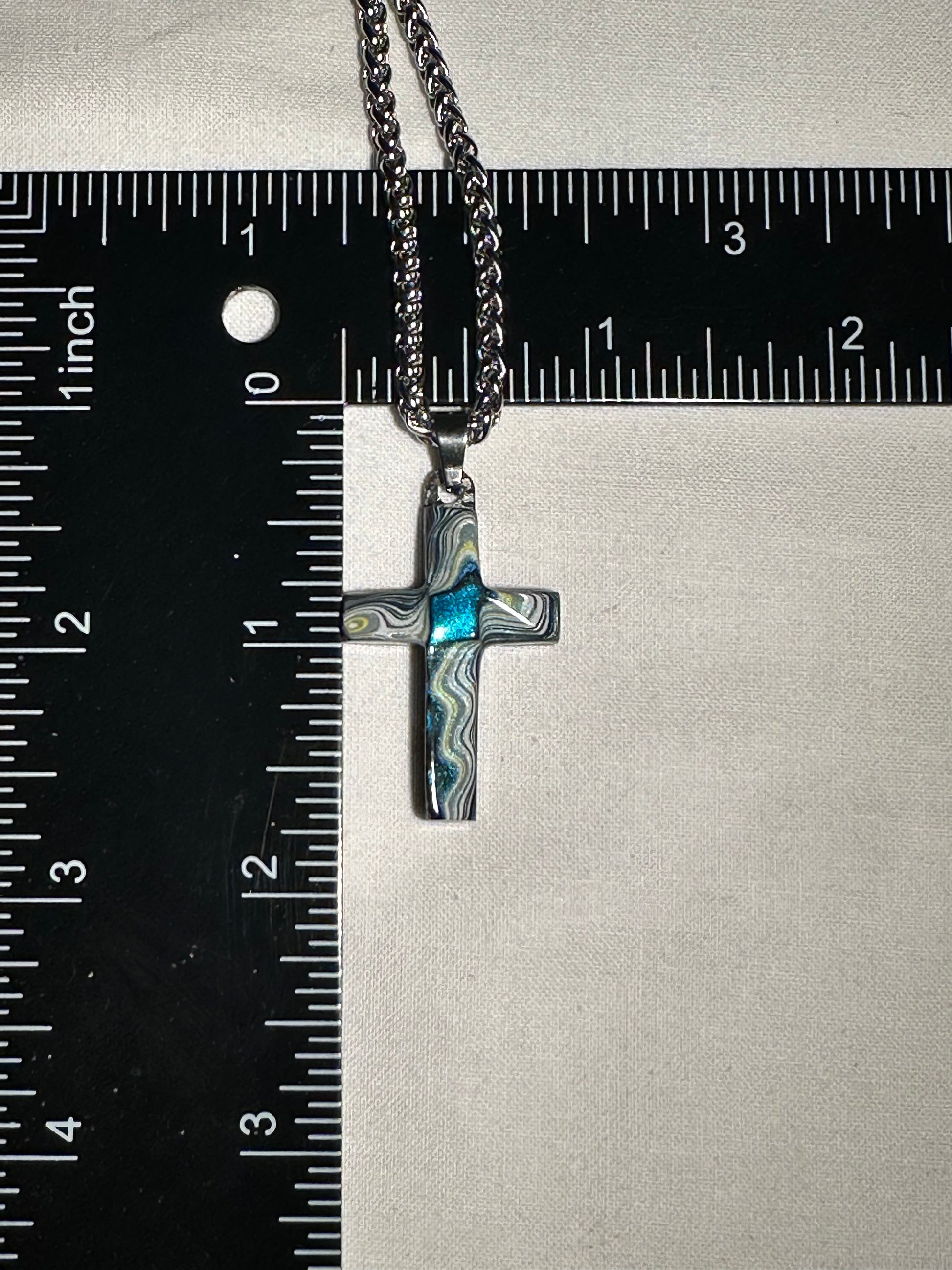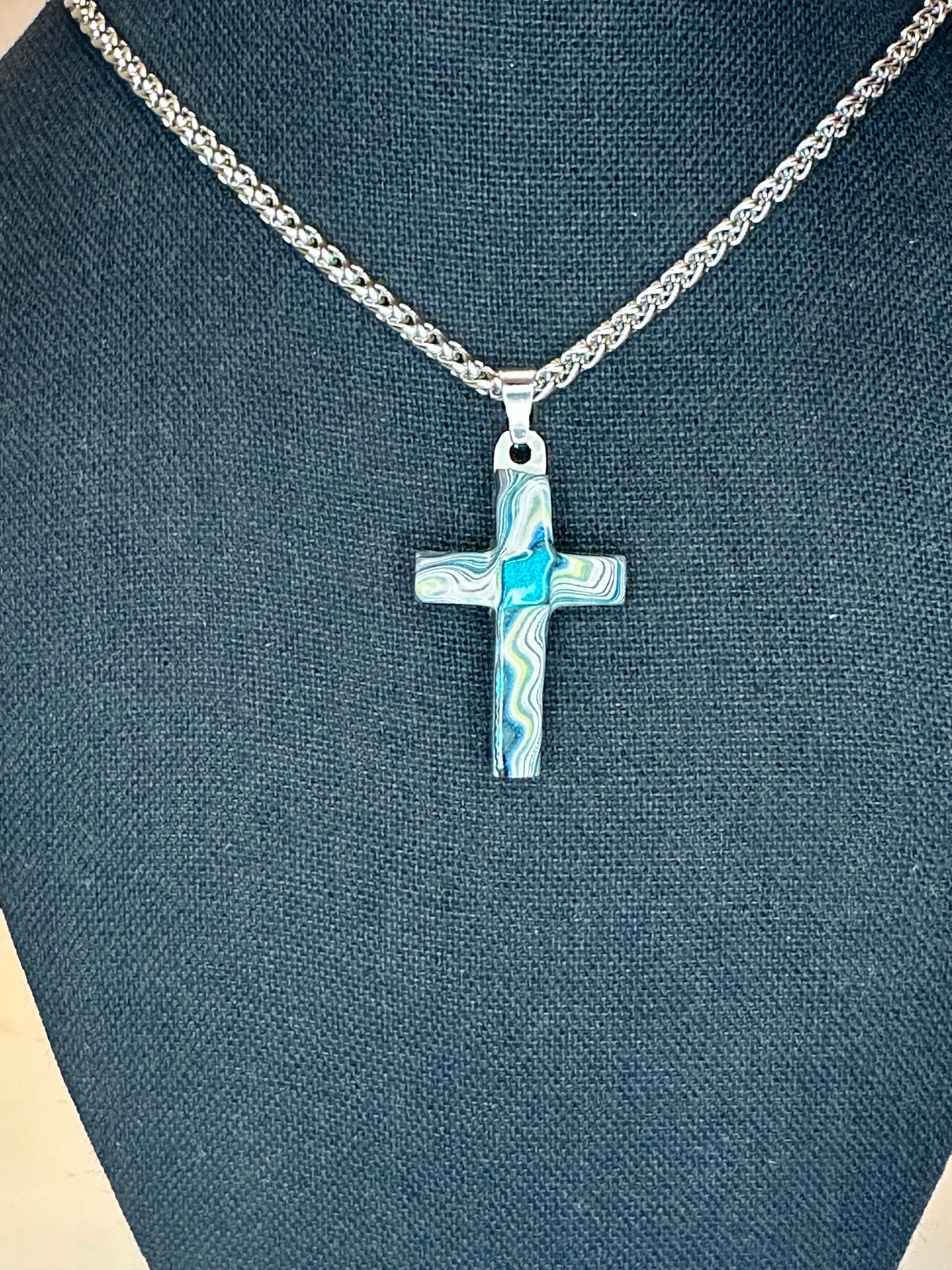 Each cross is handmade in Fort Worth, Texas. Sanded and polished to reveal the specific color bands you see here. Chosen for their texture, balance, and beauty.