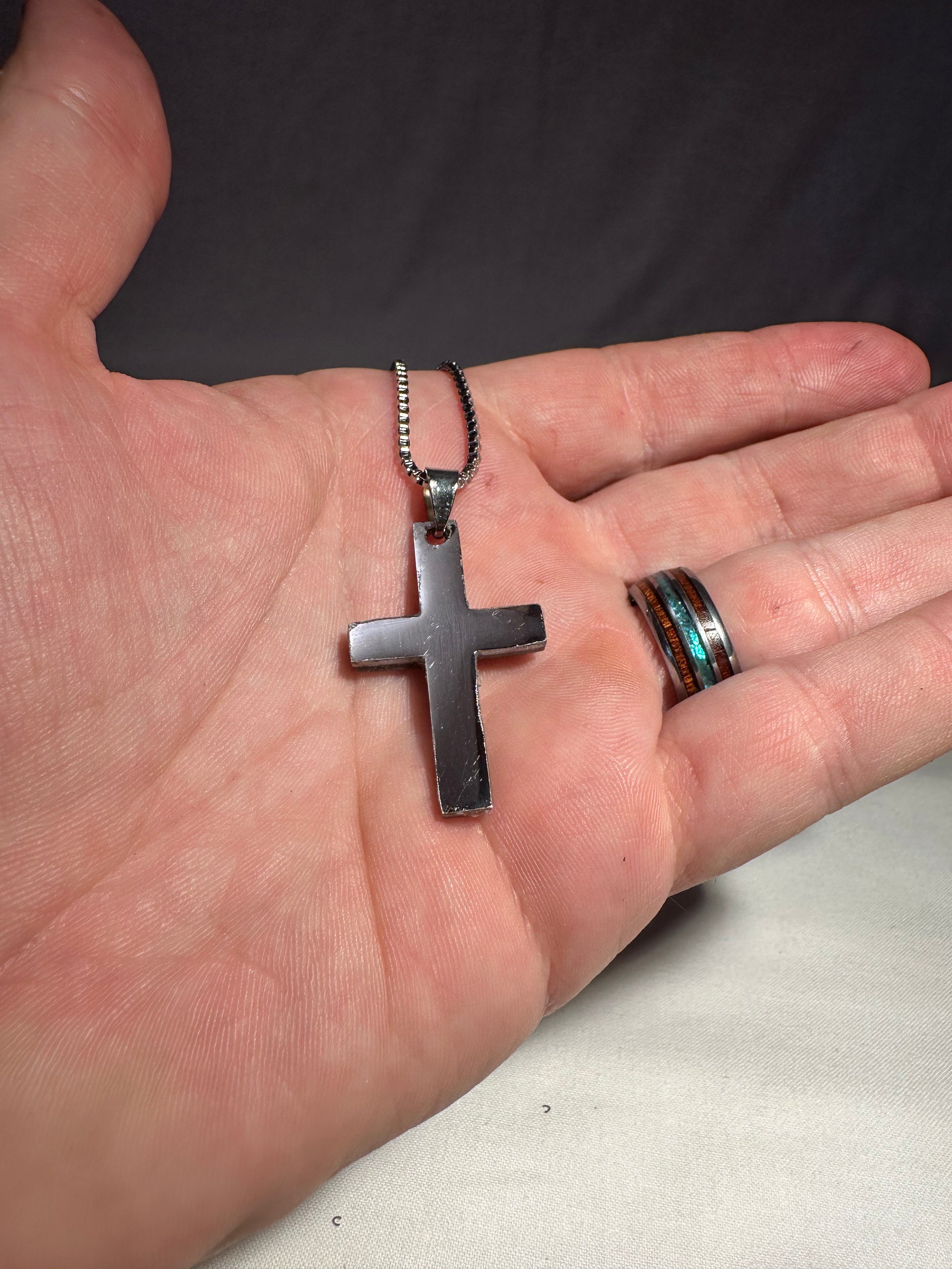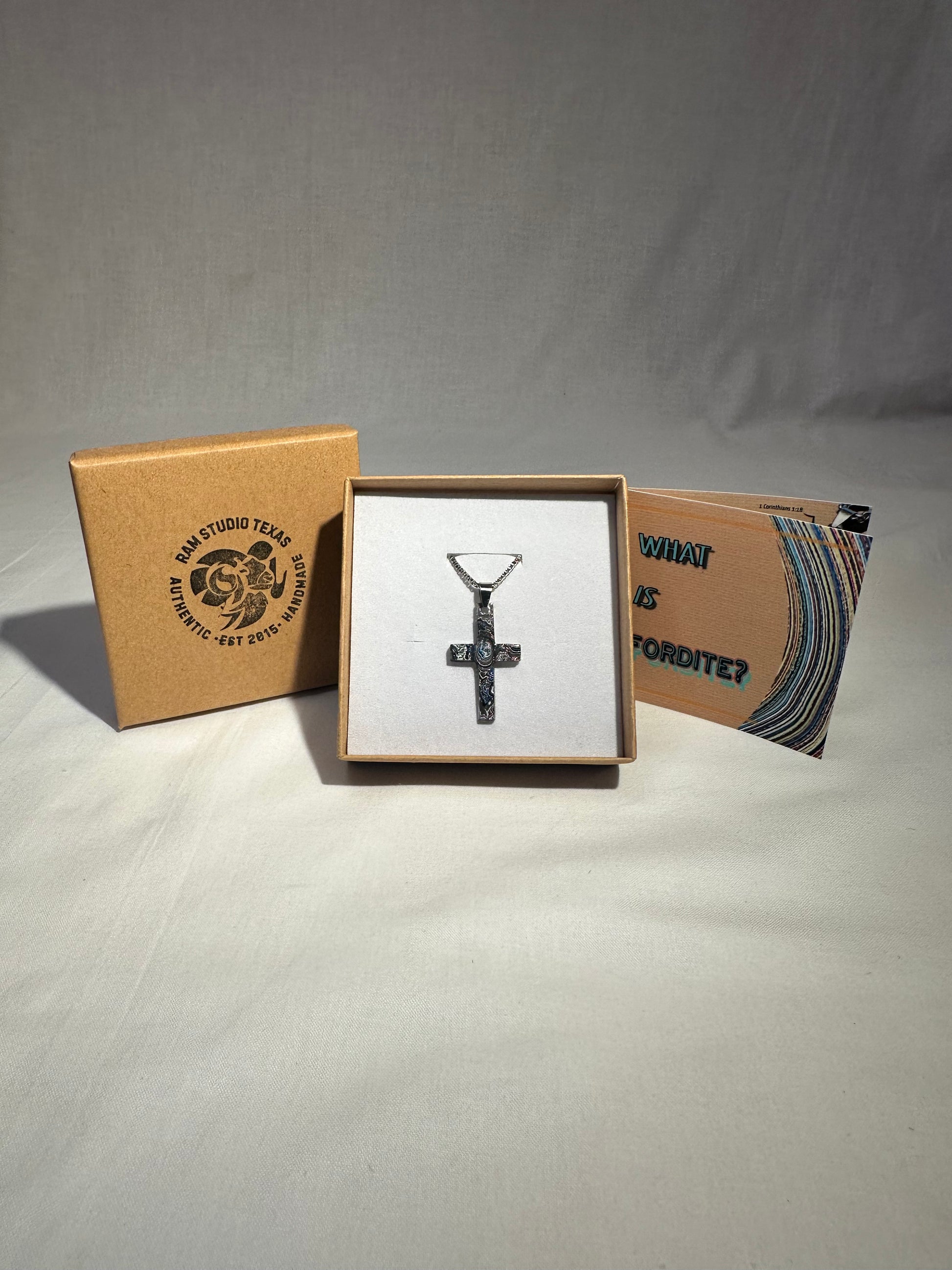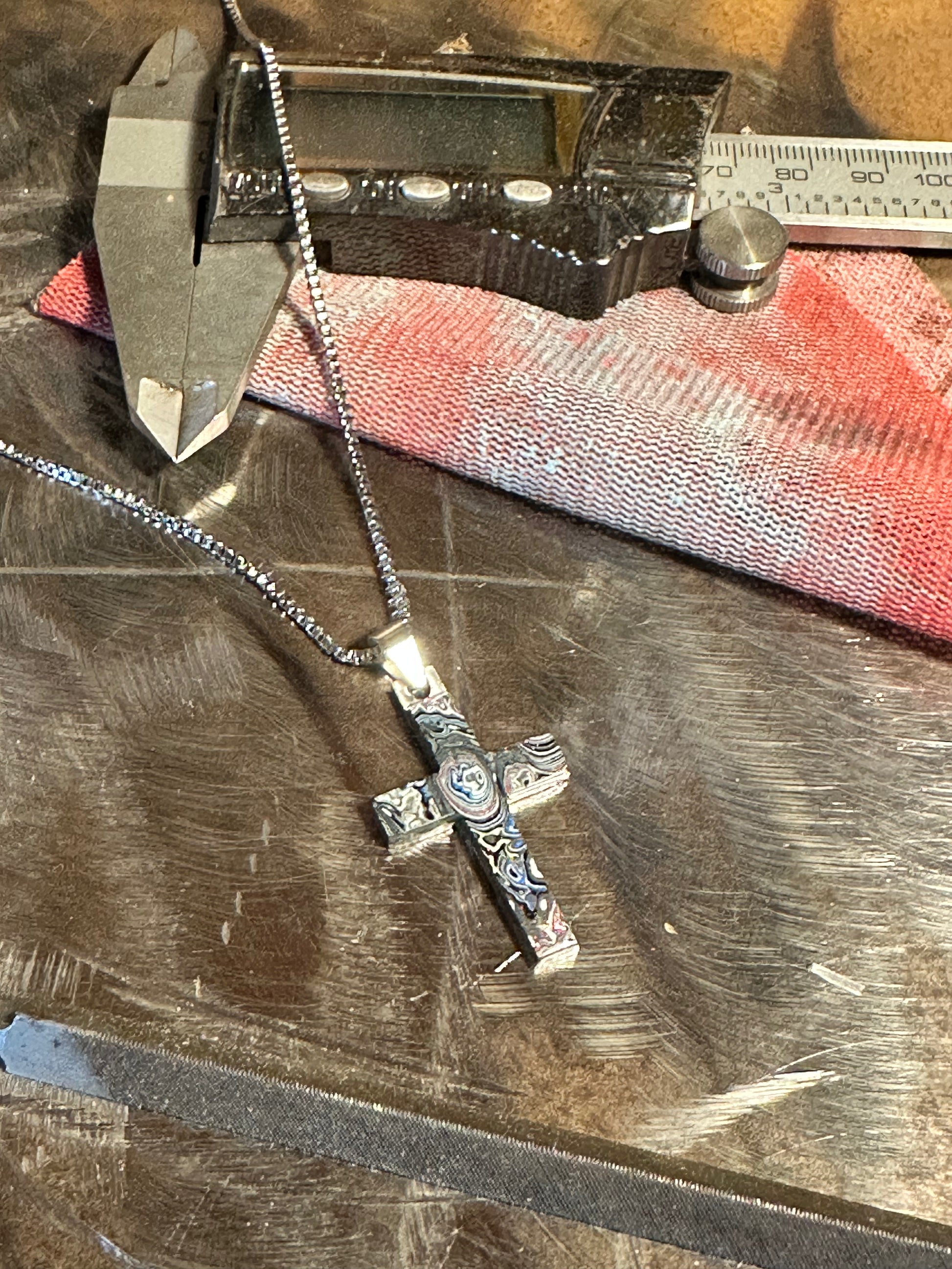 Each cross is handmade in Fort Worth, Texas. Sanded and polished to reveal the specific color bands you see here. Chosen for their texture, balance, and beauty.