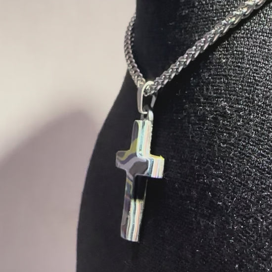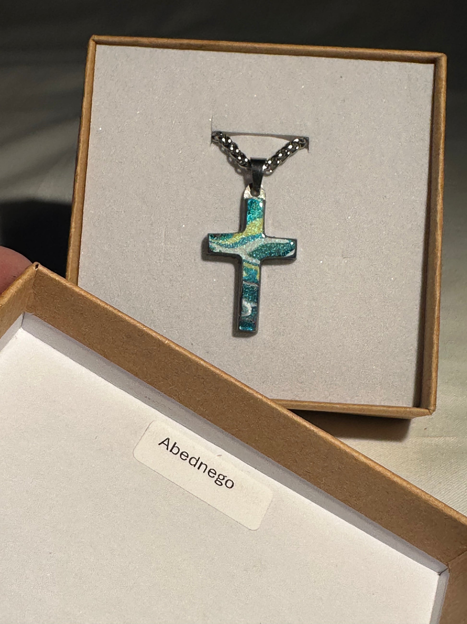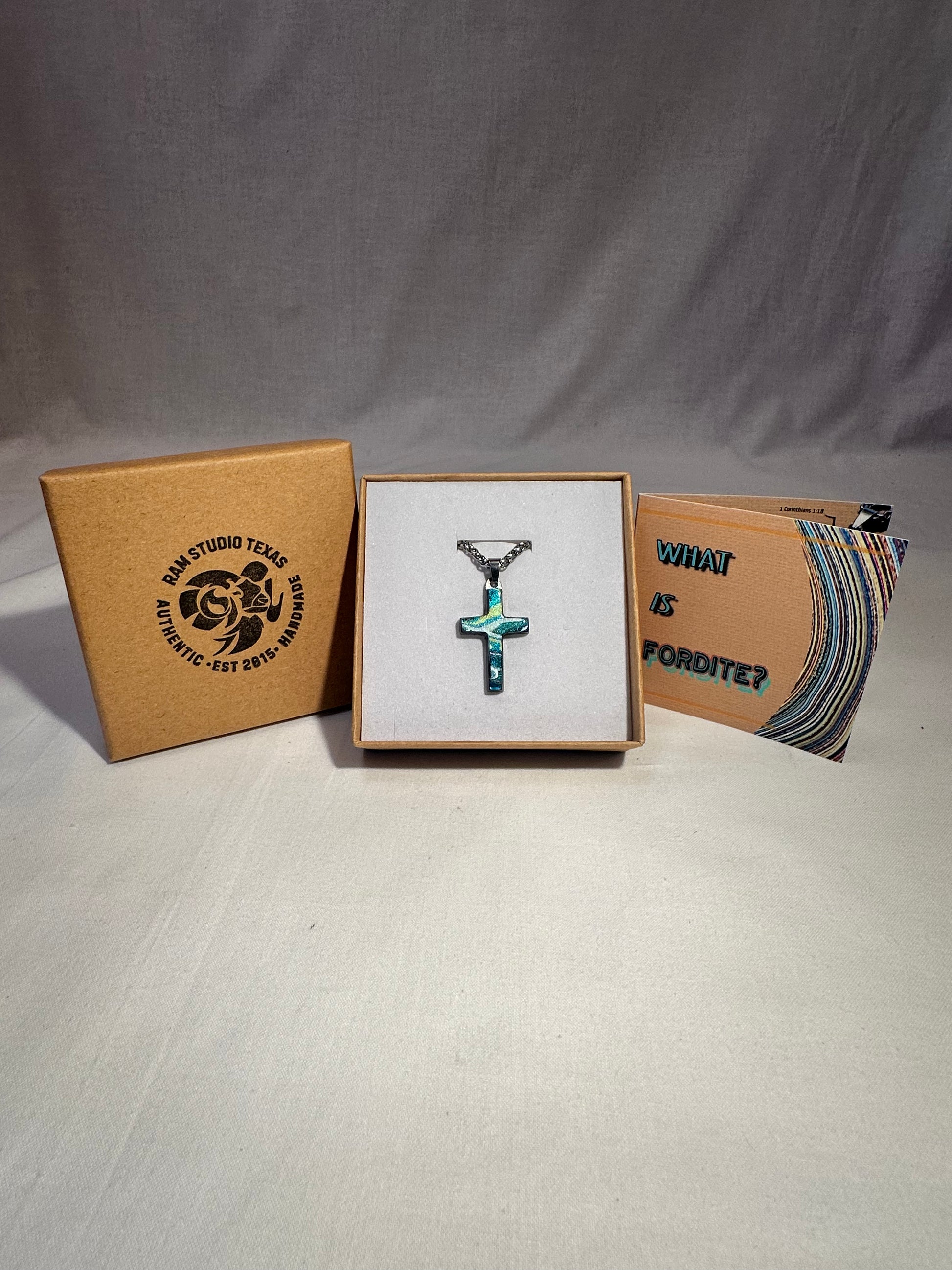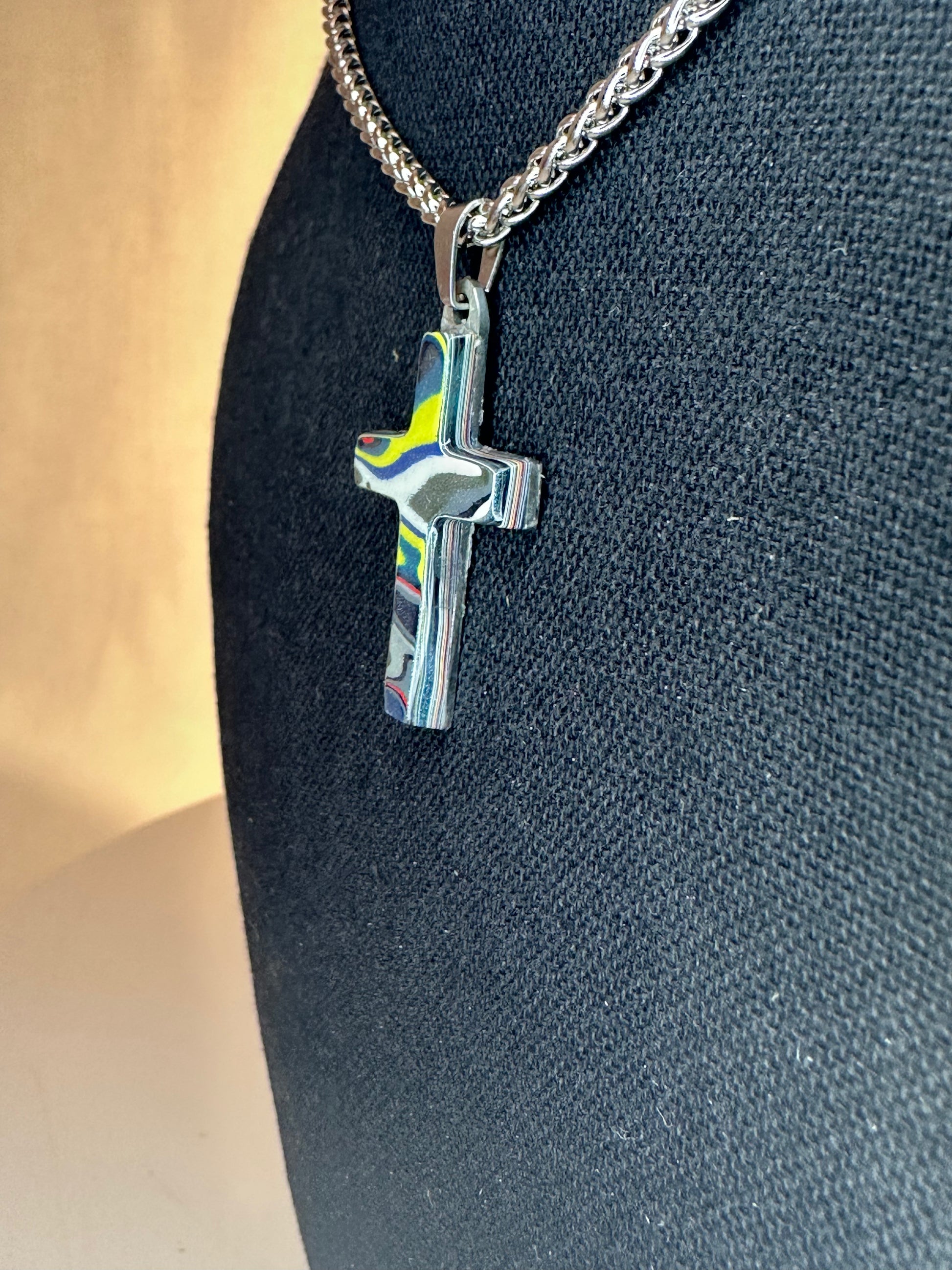 Each cross is handmade in Fort Worth, Texas. Sanded and polished to reveal the specific color bands you see here. Chosen for their texture, balance, and beauty.