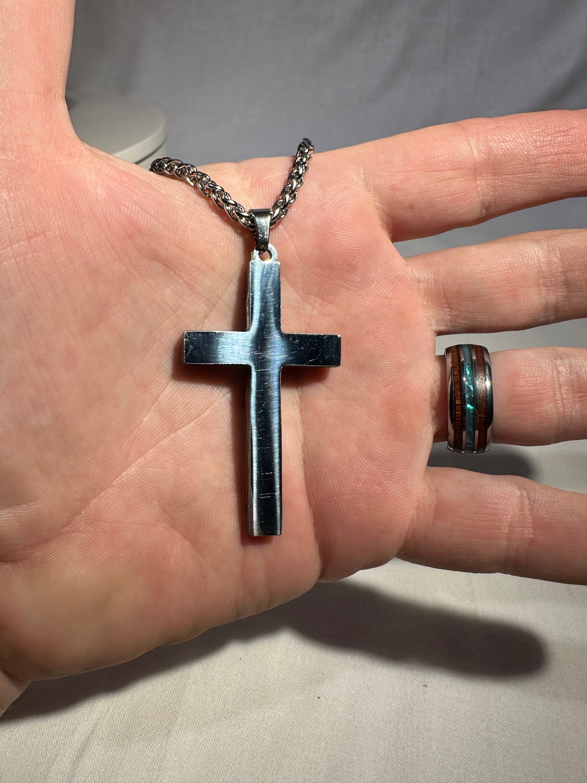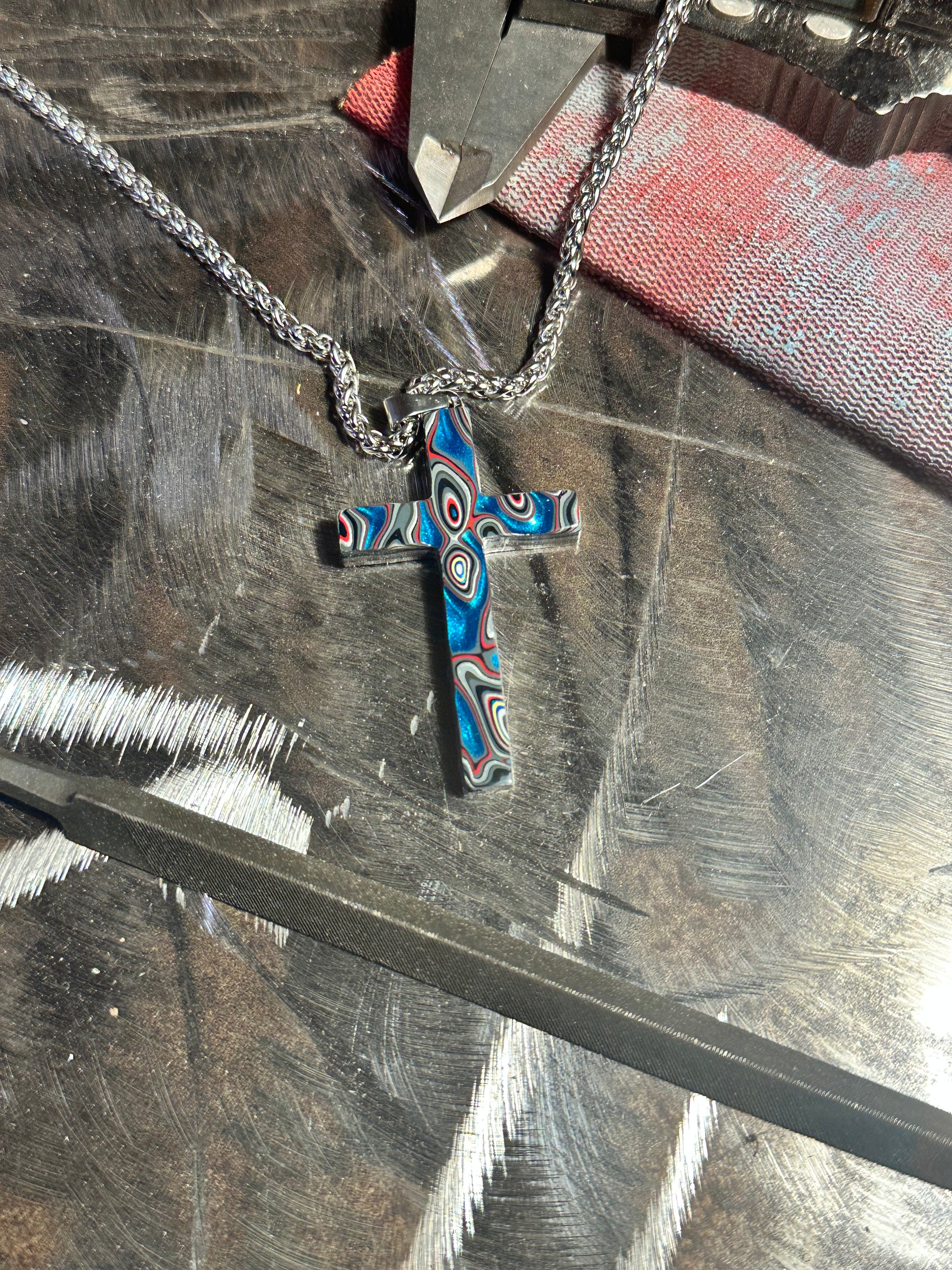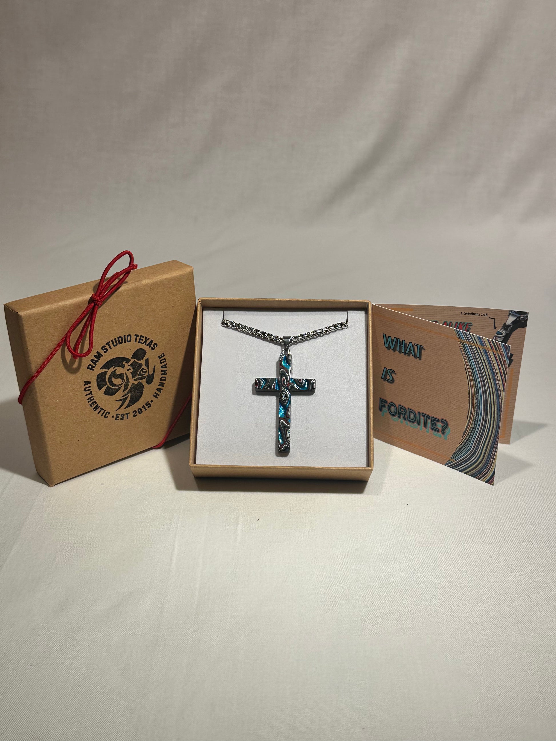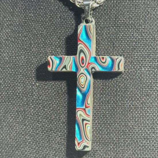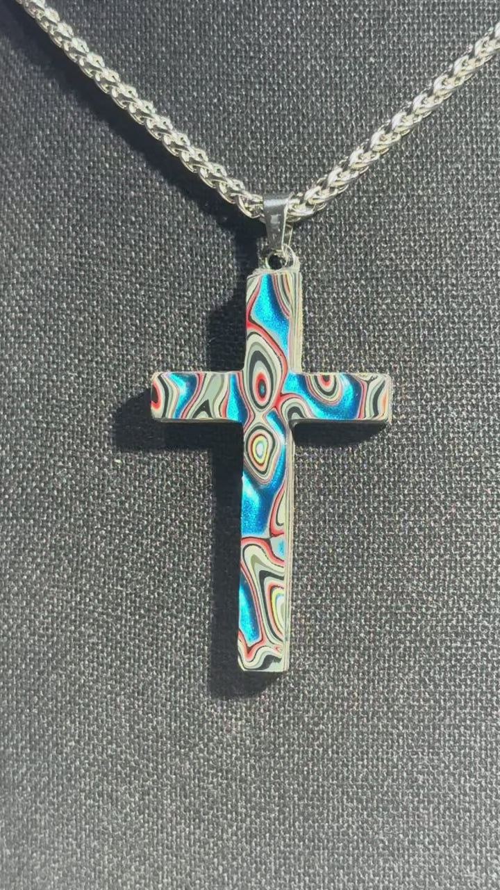Each cross is handmade in Fort Worth, Texas. Sanded and polished to reveal the specific color bands you see here. Chosen for their texture, balance, and beauty.
