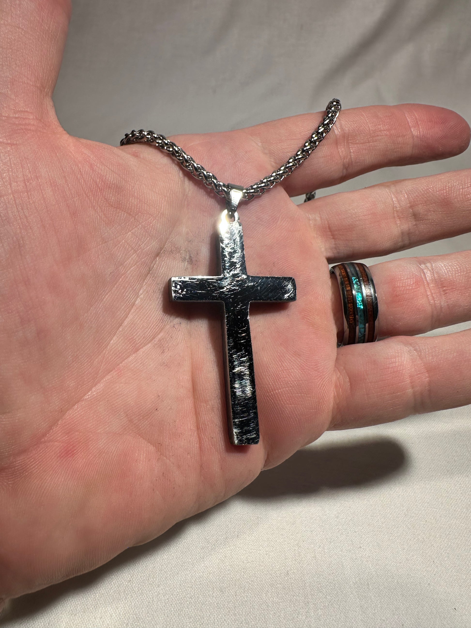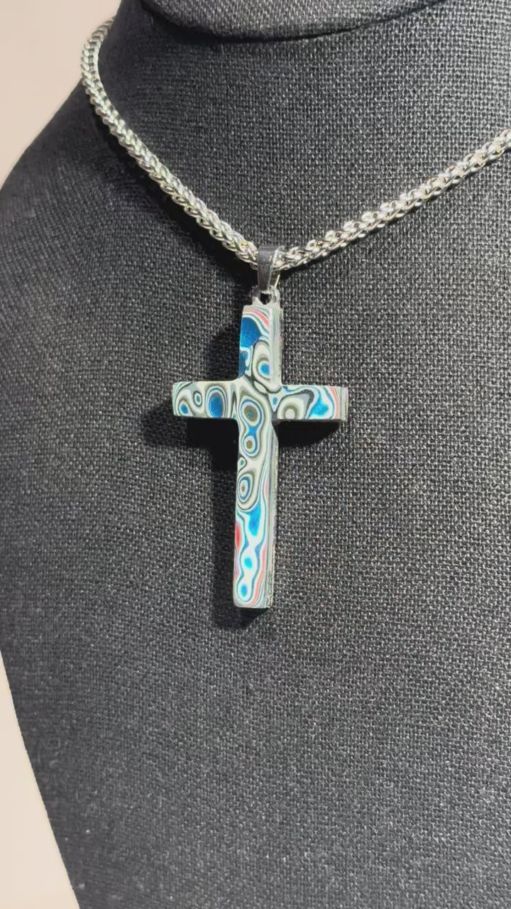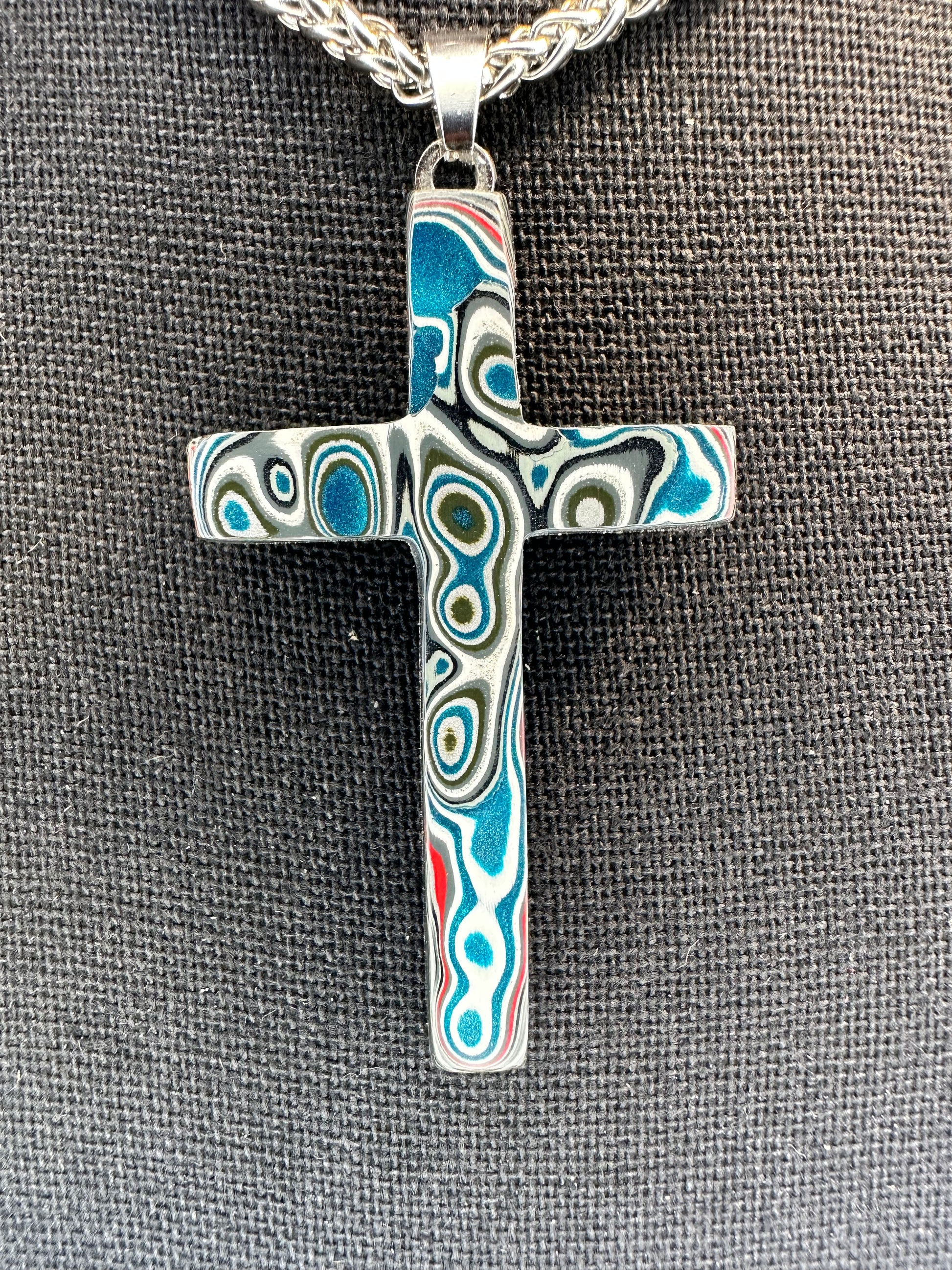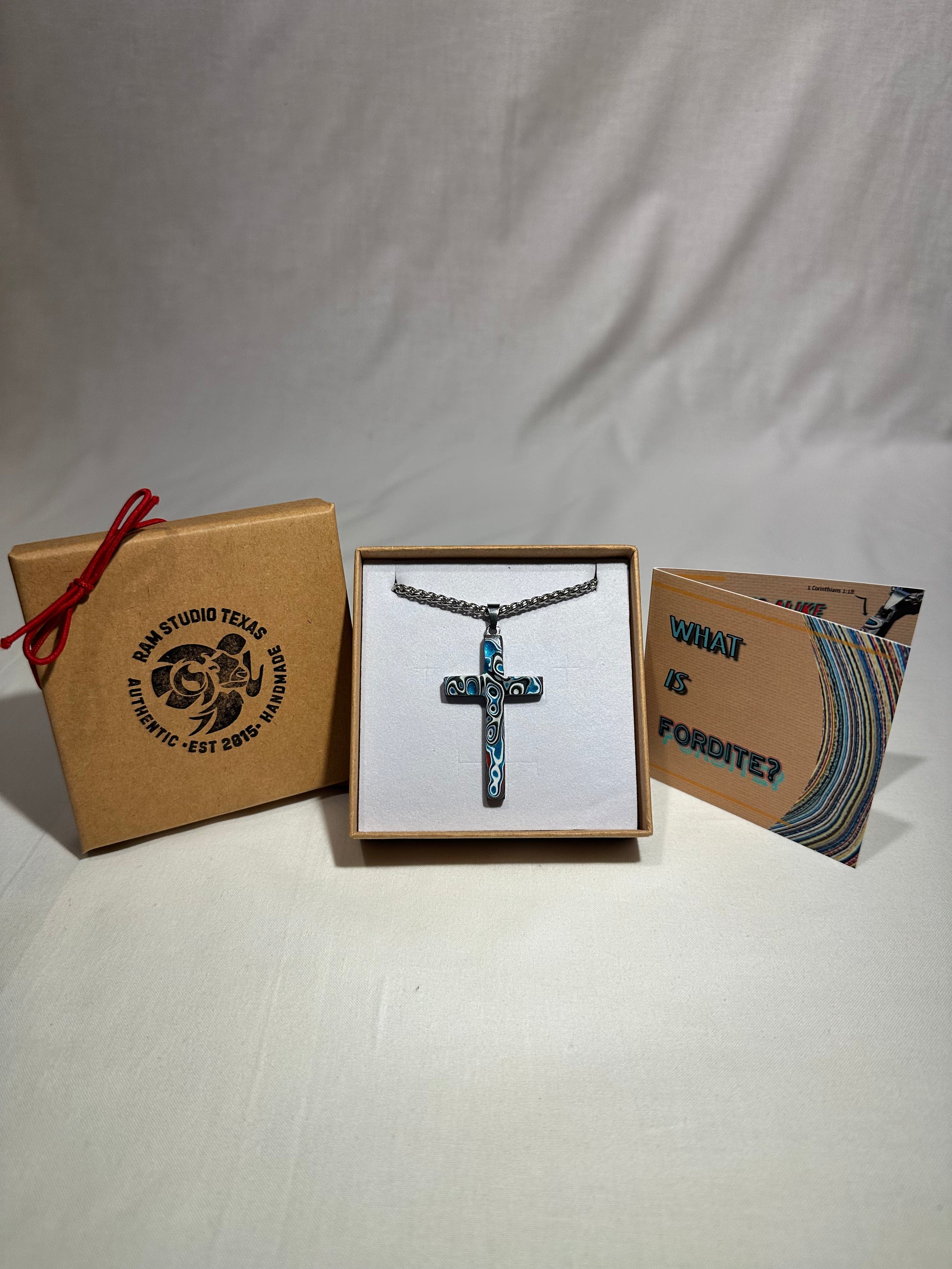 Each cross is handmade in Fort Worth, Texas. Sanded and polished to reveal the specific color bands you see here. Chosen for their texture, balance, and beauty.