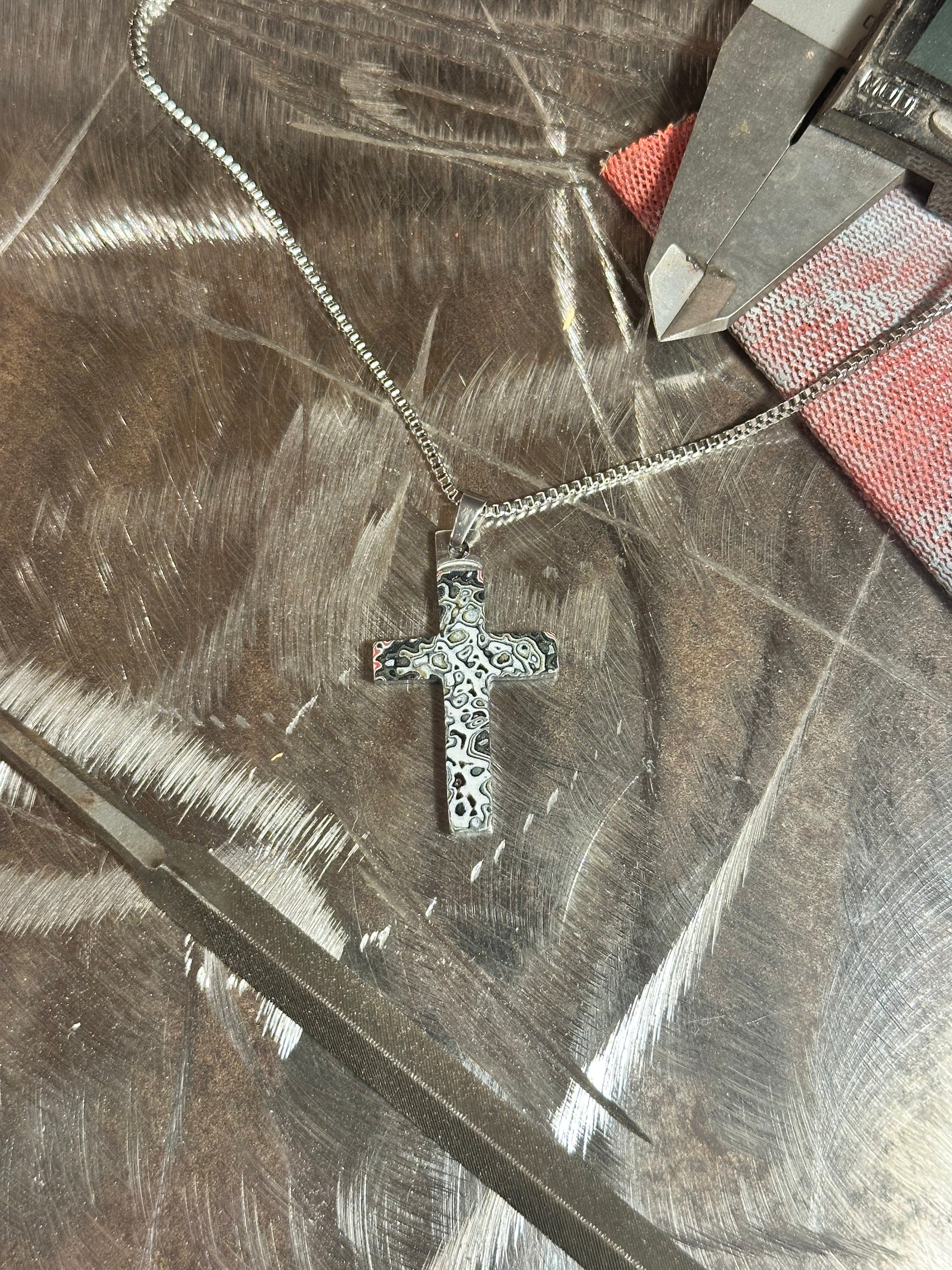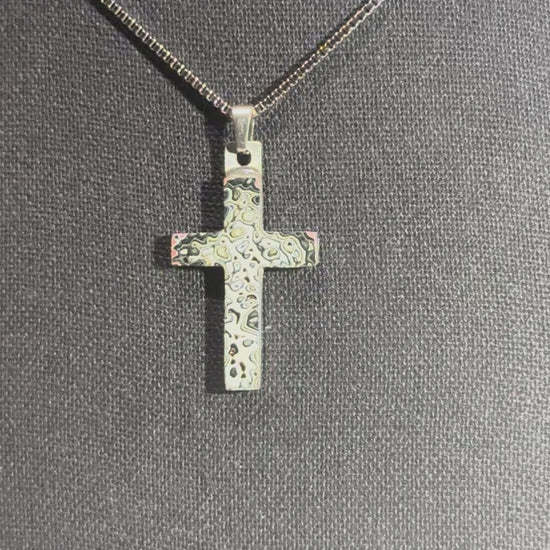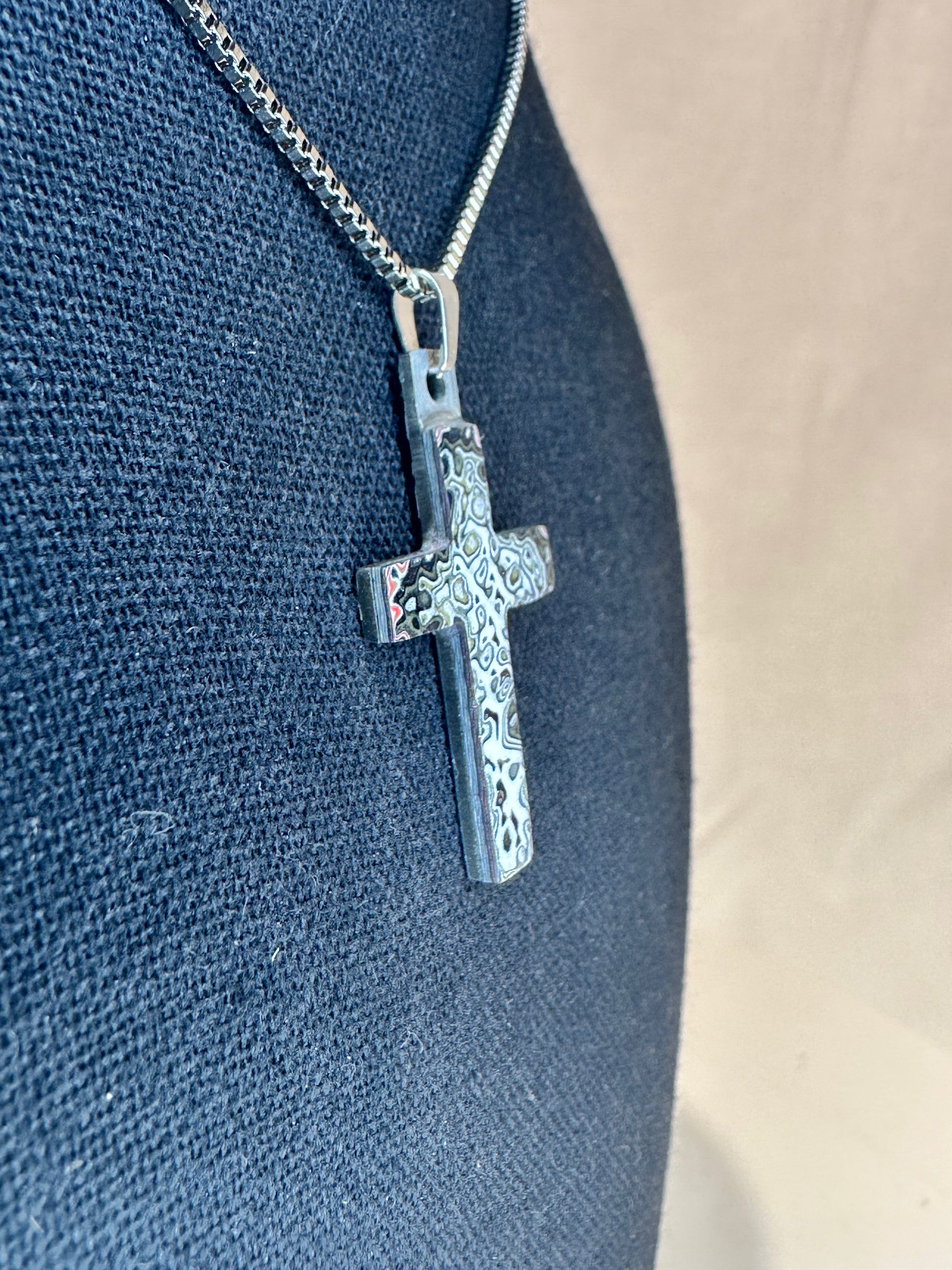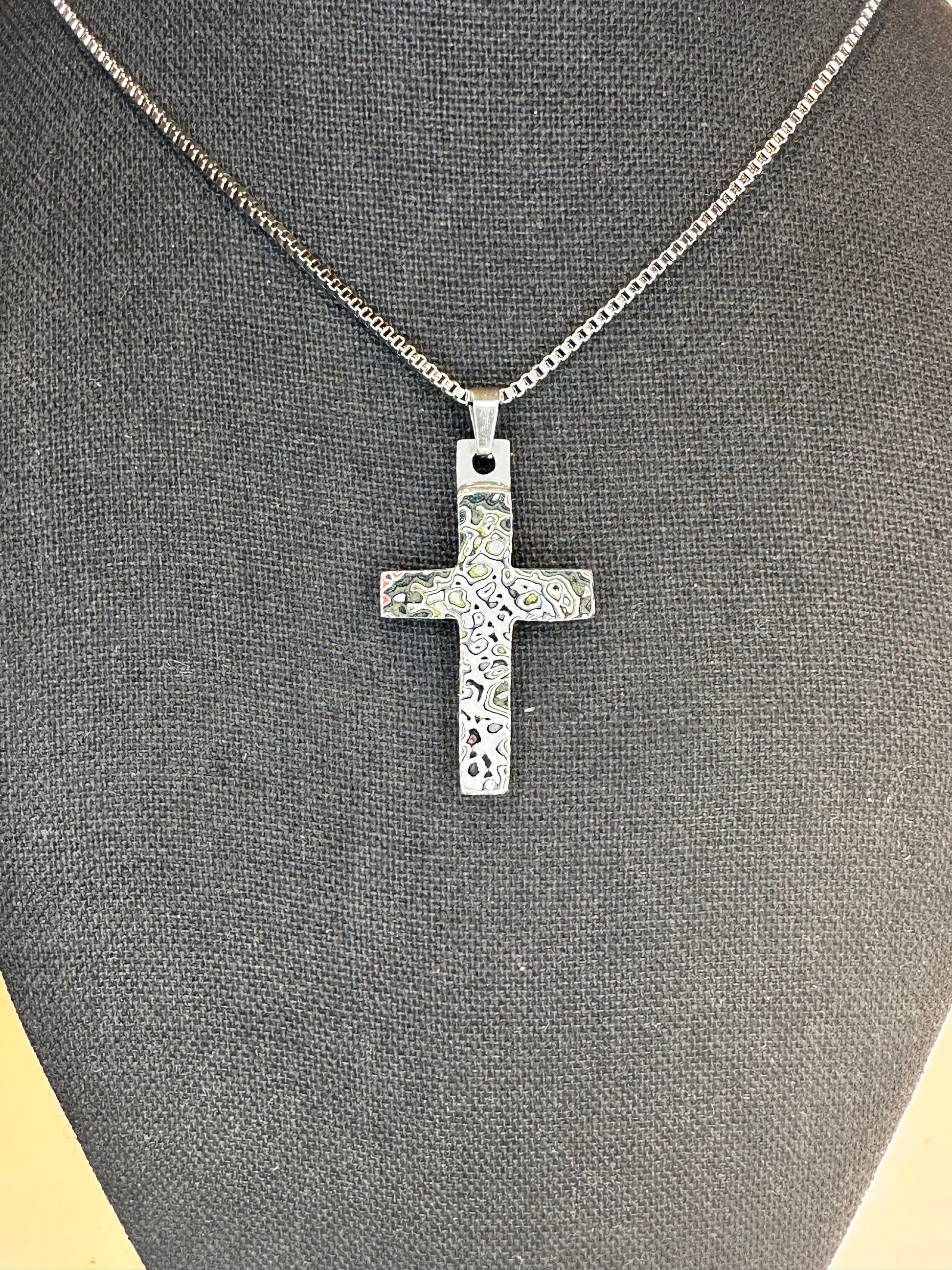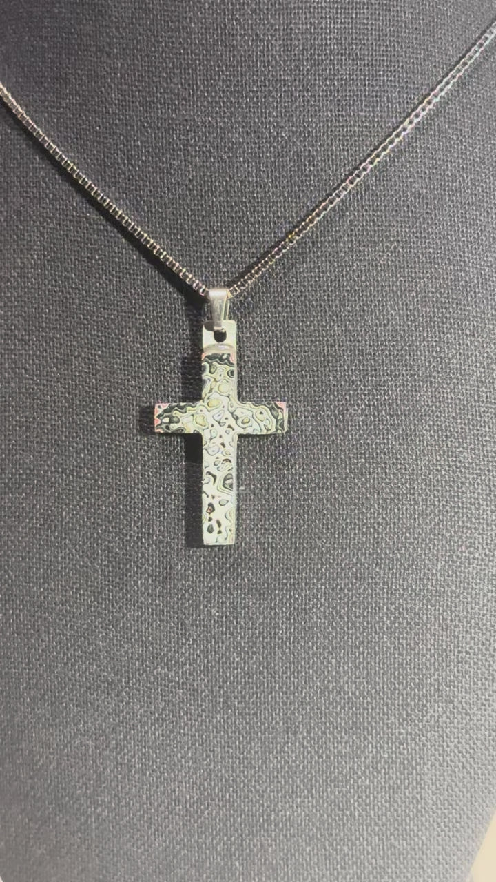 Each cross is handmade in Fort Worth, Texas. Sanded and polished to reveal the specific color bands you see here. Chosen for their texture, balance, and beauty.