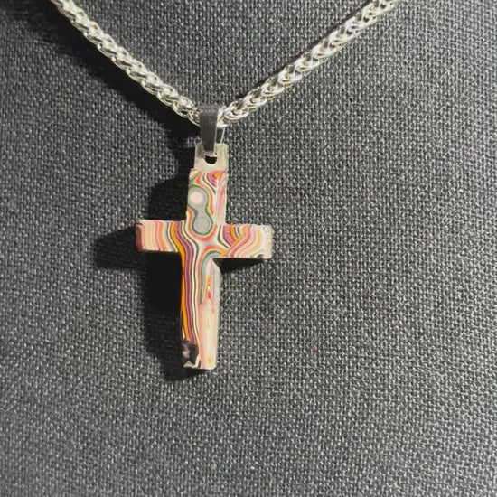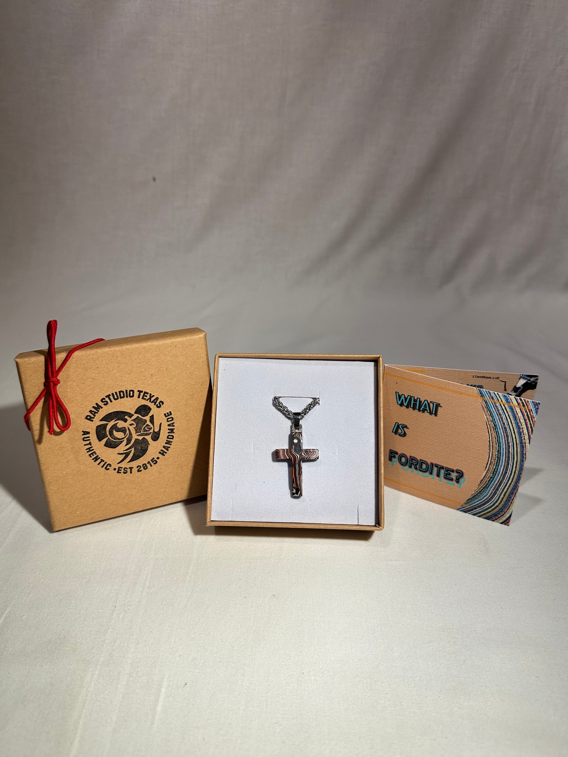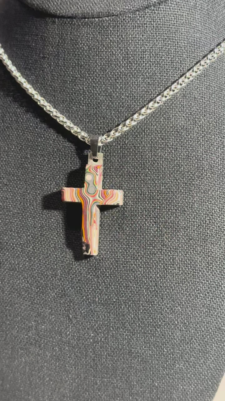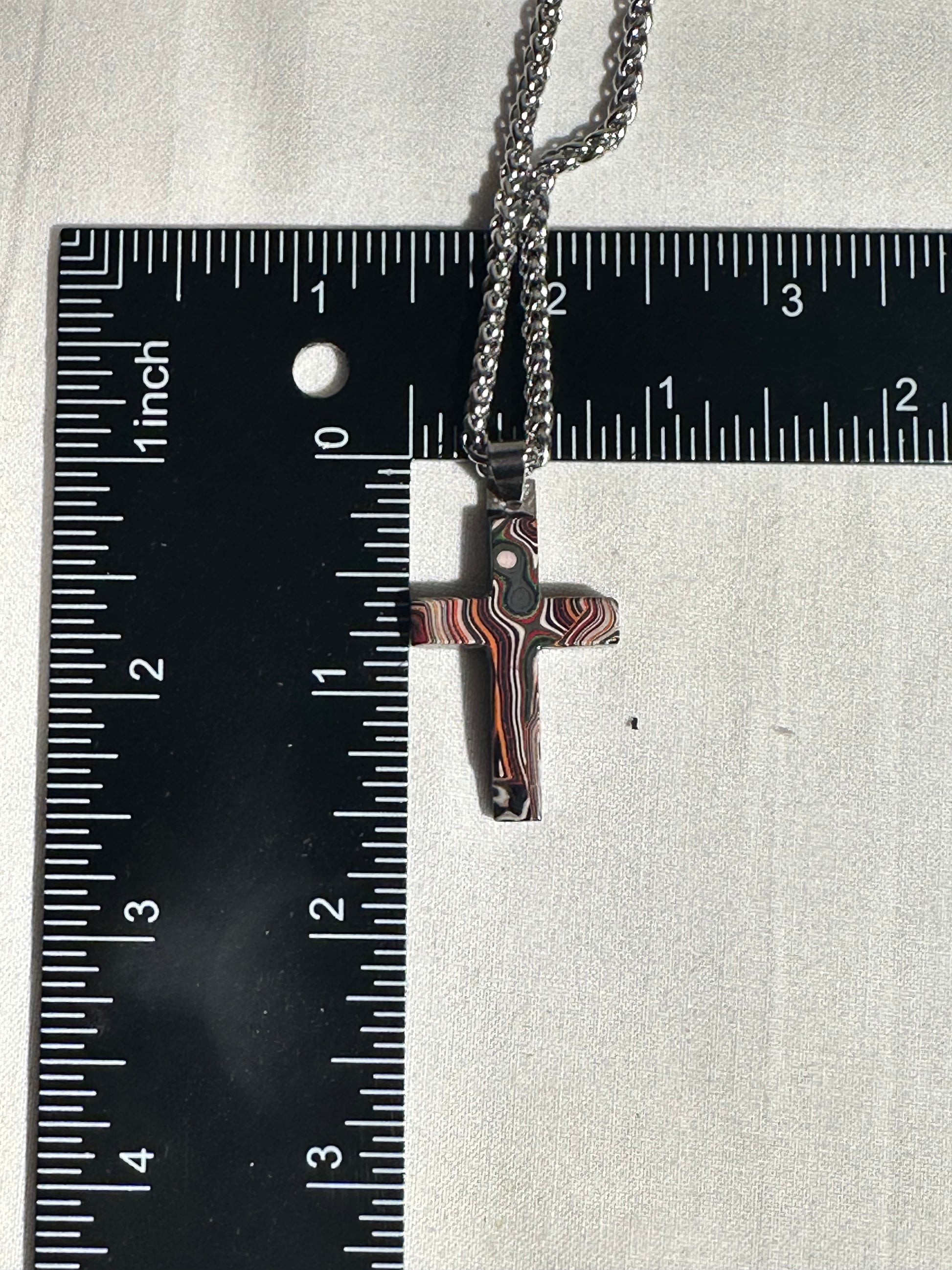 Each cross is handmade in Fort Worth, Texas. Sanded and polished to reveal the specific color bands you see here. Chosen for their texture, balance, and beauty.