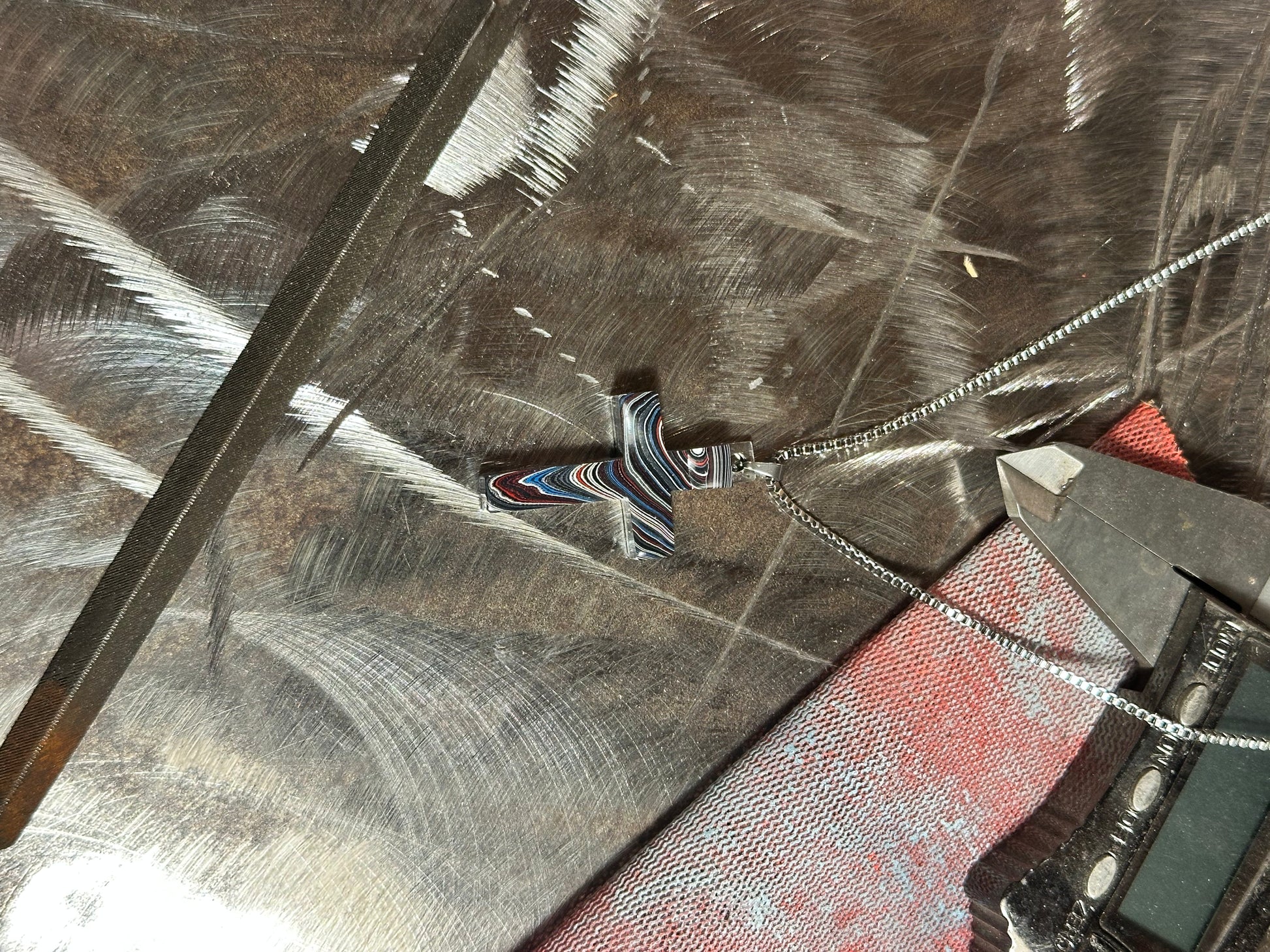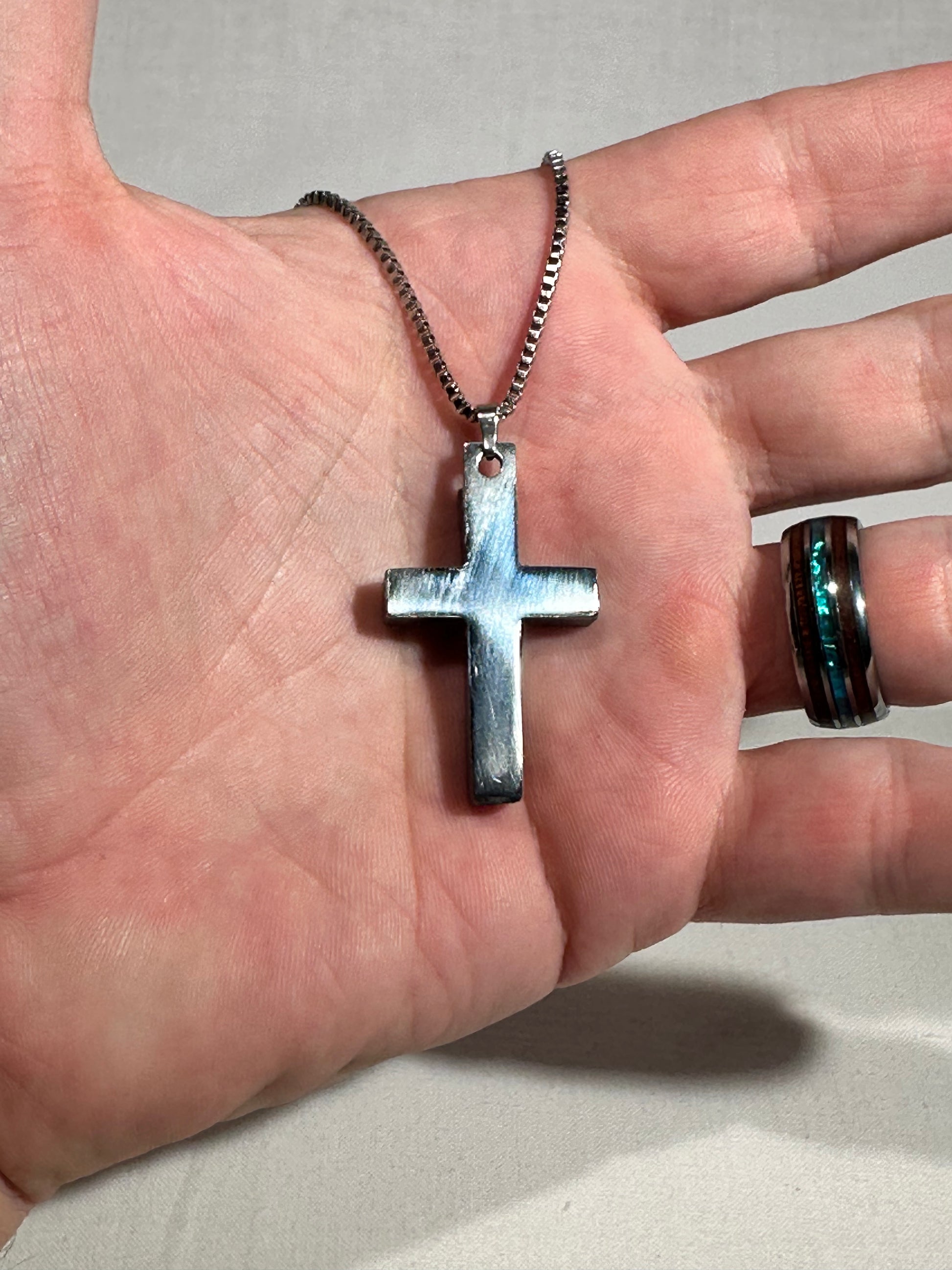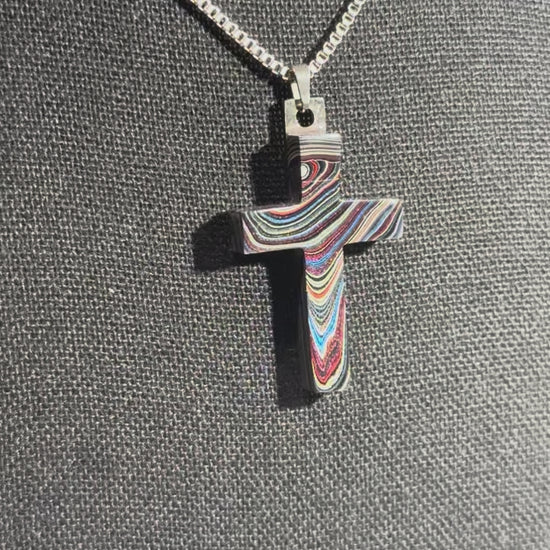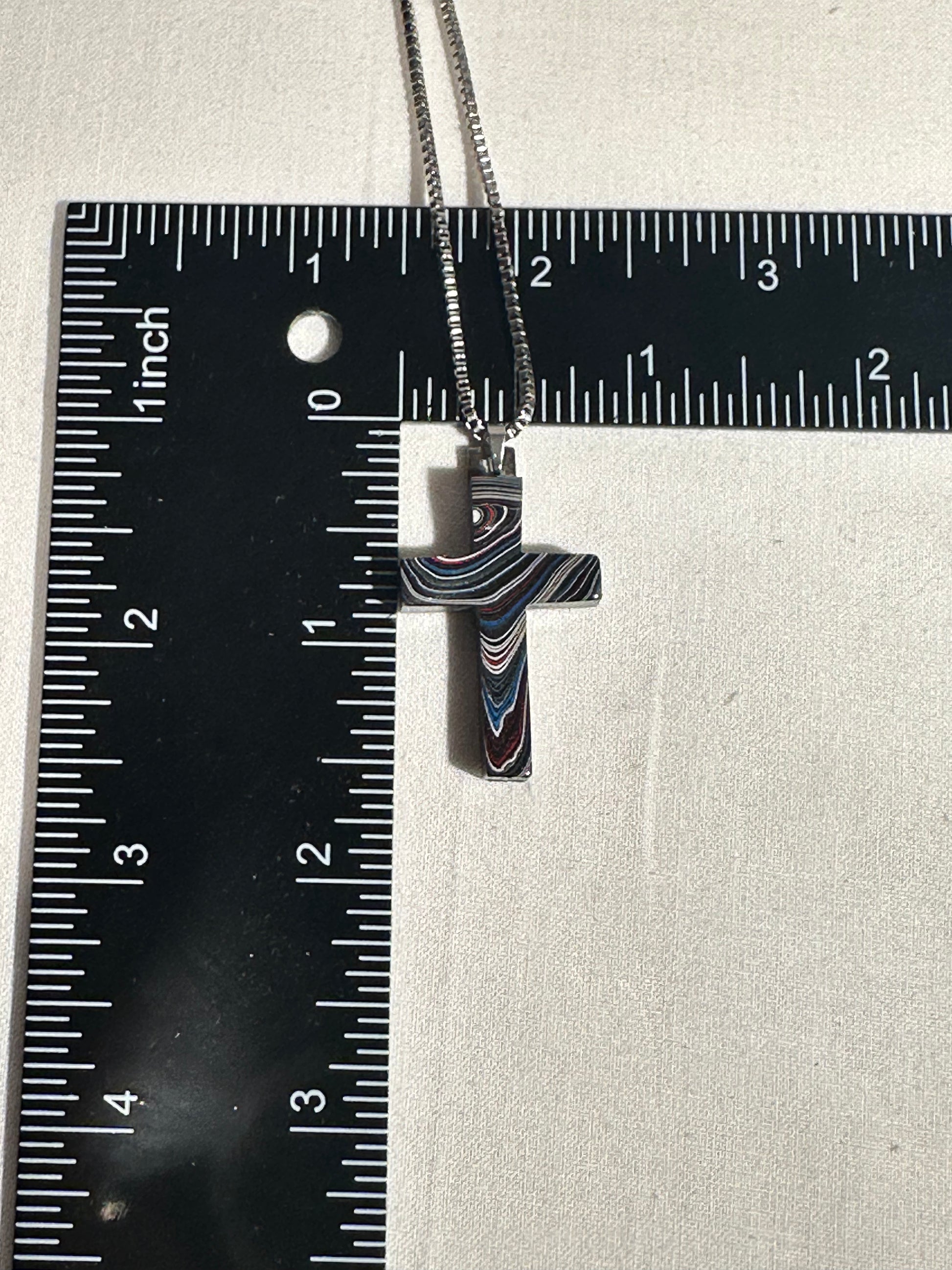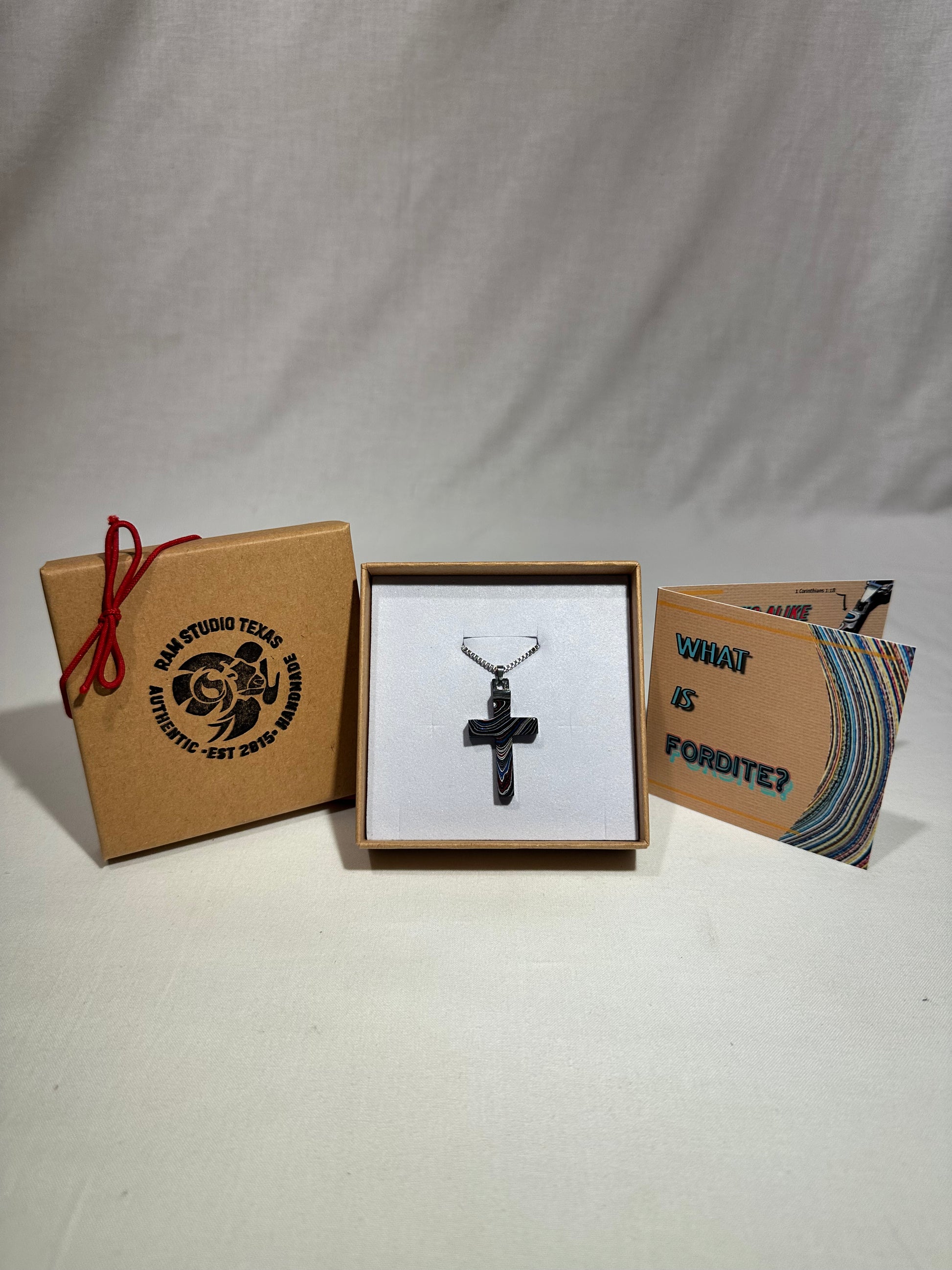 Each cross is handmade in Fort Worth, Texas. Sanded and polished to reveal the specific color bands you see here. Chosen for their texture, balance, and beauty.